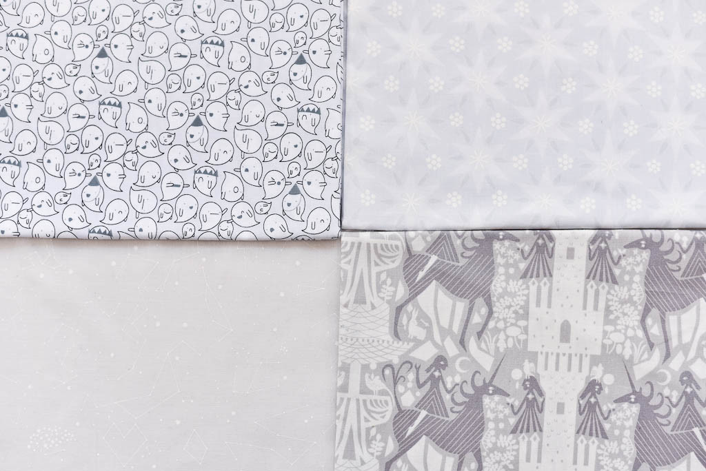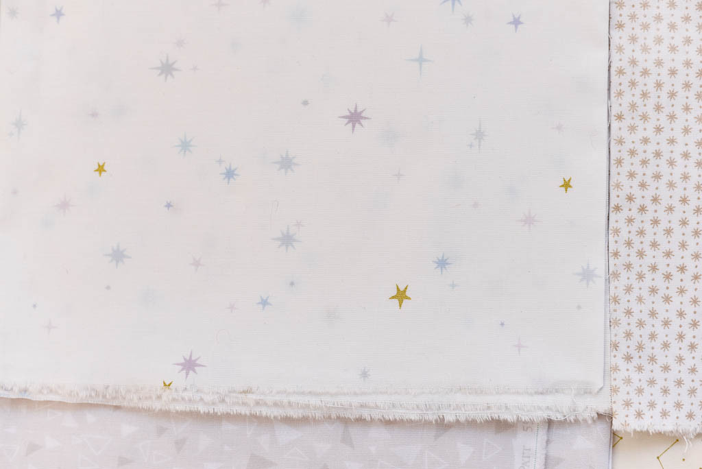 Lizzy has gone through her past prints, selected so many favourites (ghosty ghosts! flags! ugly duckling! star chart!) and recoloured them into a dreamy low volume collection. These fabrics are all the palest blues, greys and creams. These are MY colours! Many of them are sprinkled with bits of metallic. I love stashing these kinds of prints. They work for everything, make perfect background fabrics in quilts and I often wish I had a never ending supply of them.