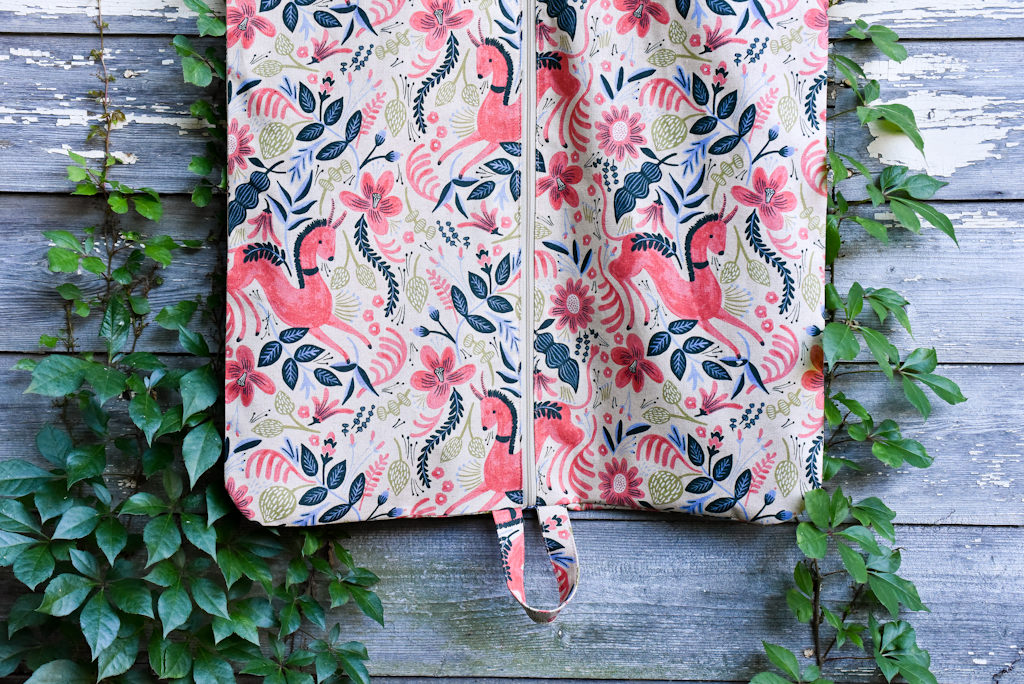 It’s true, I have a big crush on the Les Fleurs collection and I can’t stop sewing with it. After I finished my Trapeze Dress, I knew that I wanted to make something with one of the canvas prints. For me, a garment bag is such a lovely (and easy!) way to show off a fabulous fabric without having to chop it up too much. (Check out my nani IRO version) I always lengthen the garment bag to fit a fancy dress.